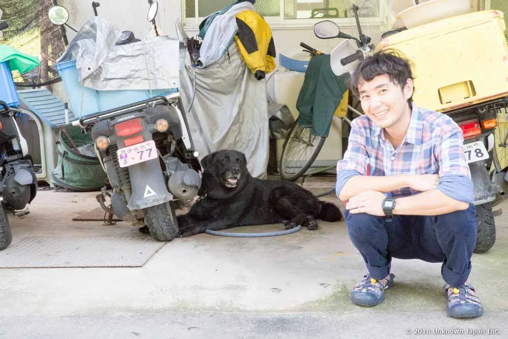 オーナーの飼っているクロウ(烏の意味)と入口で撮影。