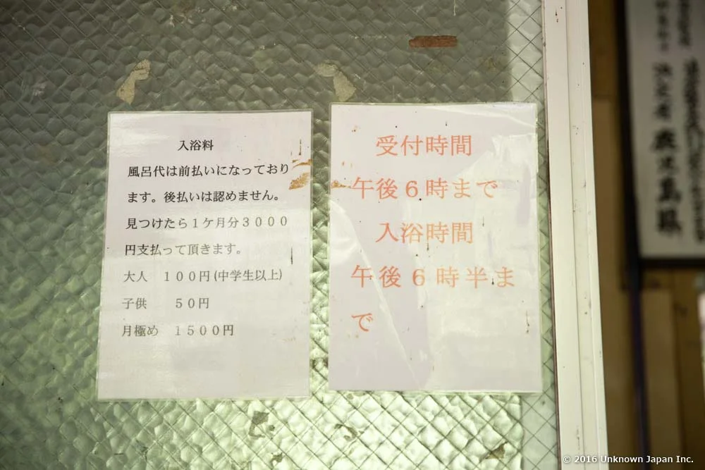 受付が無人の場合は呼び鈴を押してください。入浴料はわずか100円です。