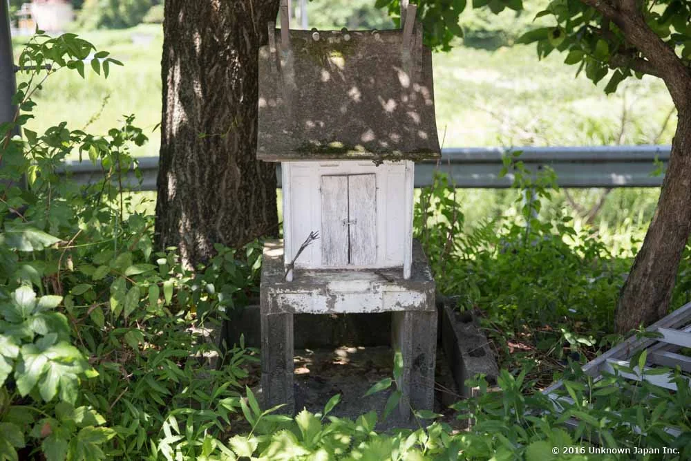 以前の源泉(アルカリ性)のあった祠。現在は鉱山からの引湯を冷ますために使用されています。水道水を使用するのとでは肌触りに大きな差が出るそうです。