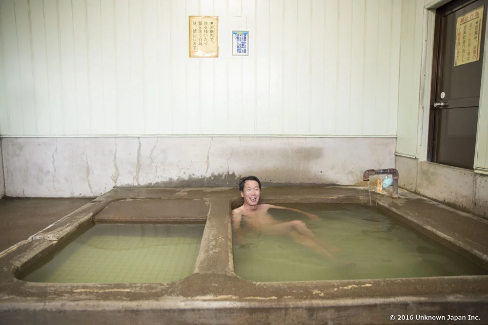 オーナーの弟である宏和さん。以前、竹の繊維が手に刺さってしまい、病院でも抜くことが出来なかったそうですが、ここの鉱泉に手を浸けていると一時間程度でその繊維が出てきたとのこと。お医者さんが薬で治らない患者さんに対して、太田鉱泉に行くようすすめることもあるとか。