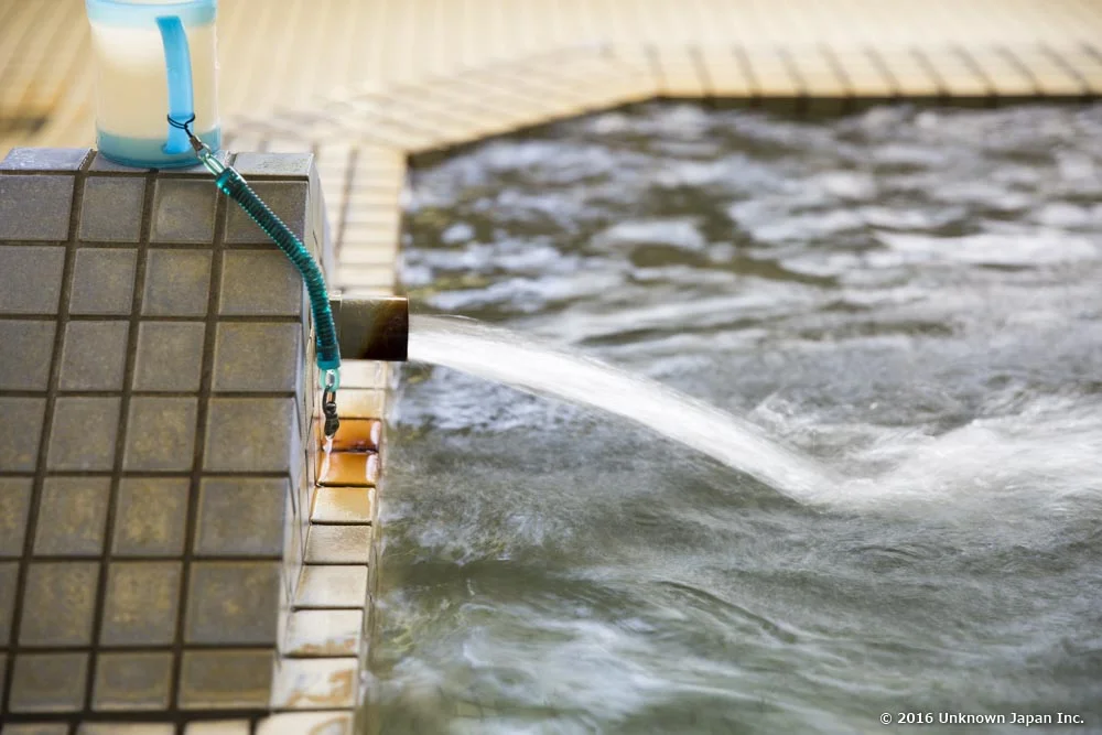 お湯は地下70mからポンプで汲み上げられており、かなりの勢いで注がれています。浴槽からはお湯がどんどん流れ出るので常に新鮮なお湯を楽しめます。過去にはお湯が気に入って霧島への温泉旅行の帰りに寄られた方もいるとか。たしかに気持ちの良いお湯です。