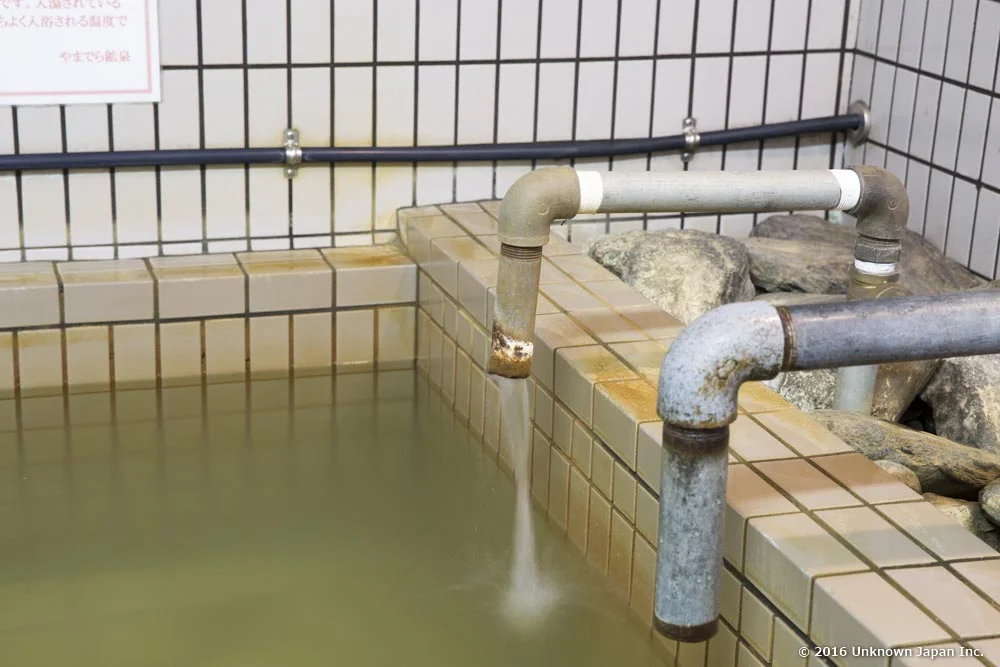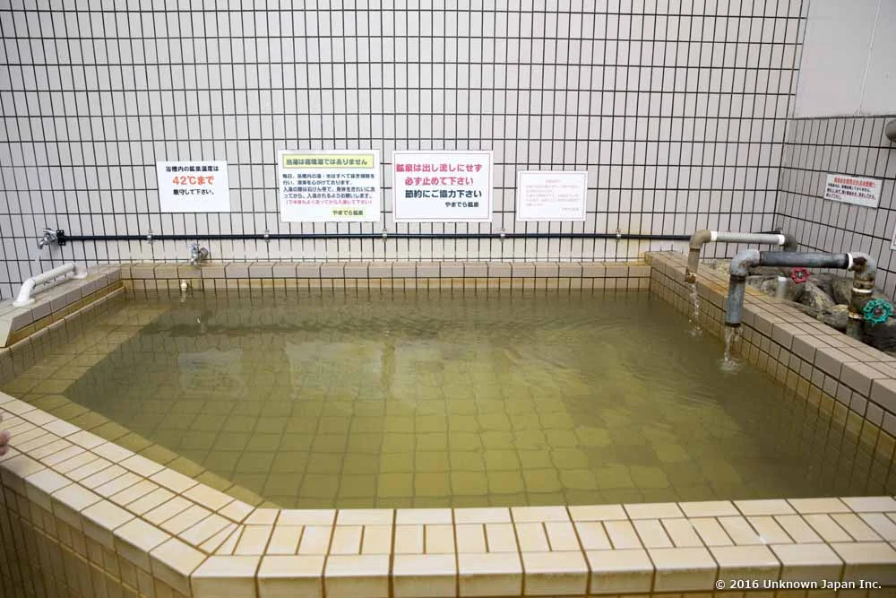20℃ほどの源泉を重油ボイラーで沸かしています。湯口からは熱いお湯が注がれており、熱い場合は加水してください、とのこと。時々あるのが「あつ湯派とぬる湯派のトラブル」だそうです。経験上、両者が折り合うことは永遠にないと思いますが(笑)、何か微笑ましいですね。