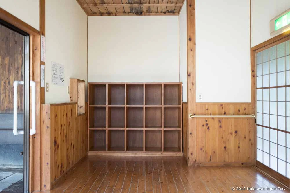 まずは桜湯です。脱衣所はとてもシンプルですごく清潔に保たれています。鍵付きのロッカーはありません。