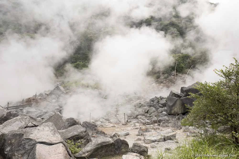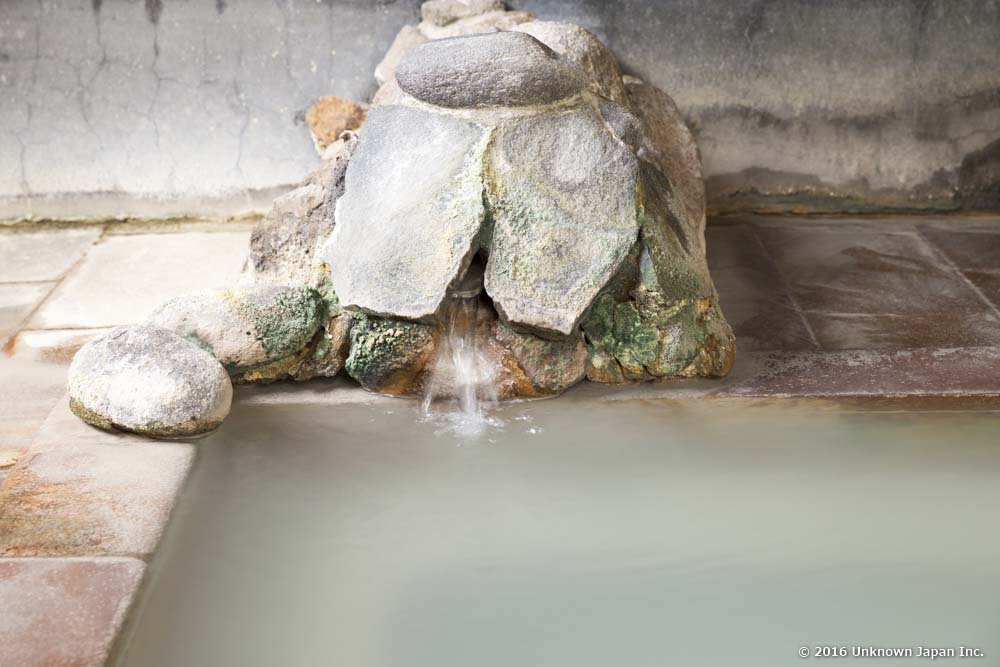 こちらは竹の湯、泥湯です。泉質は桜の湯と同じ酸性の硫黄泉です。泥は雨の少ない冬場に多くなるそうです。お湯の手触りはサラサラしています。肌がスベスベになります。