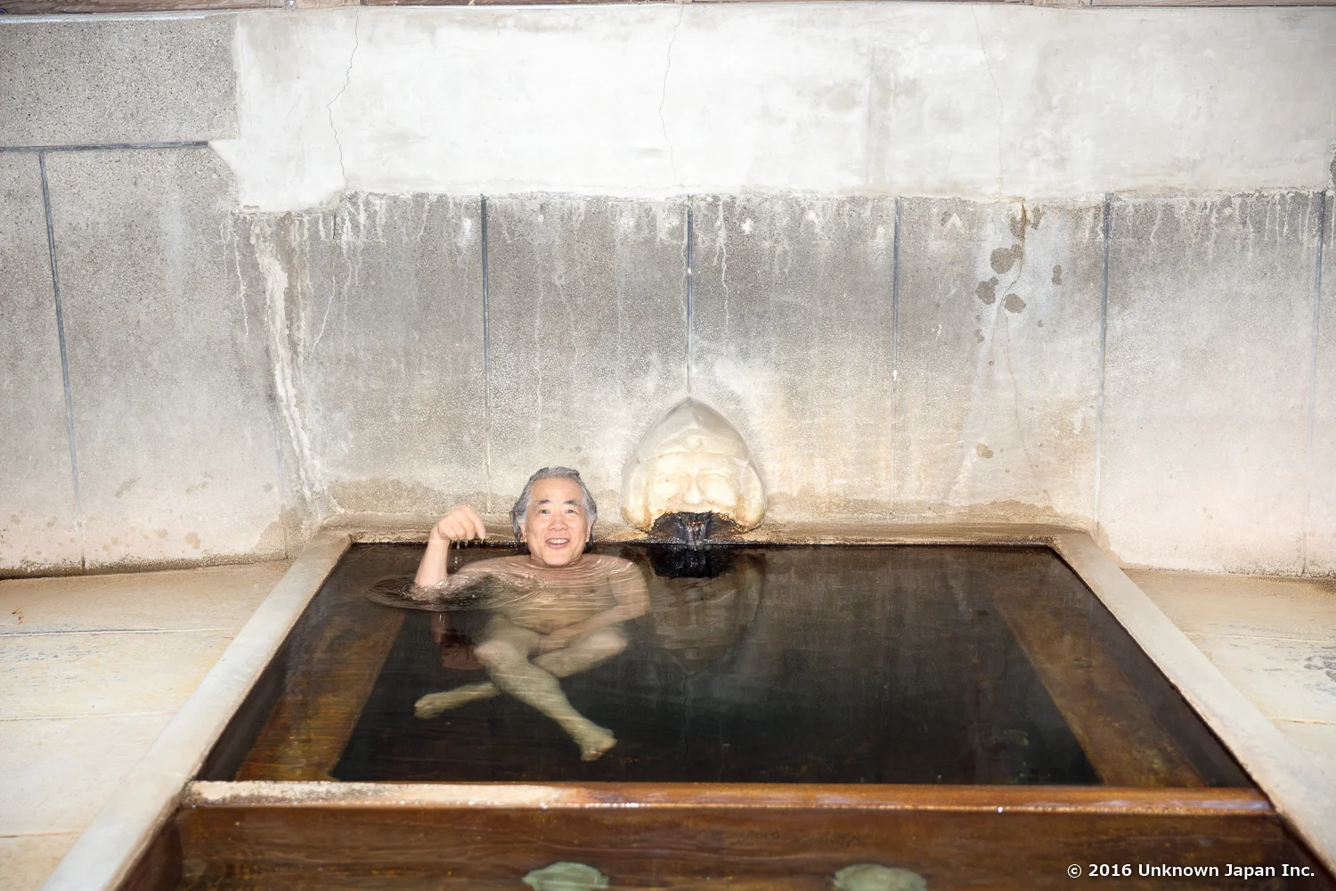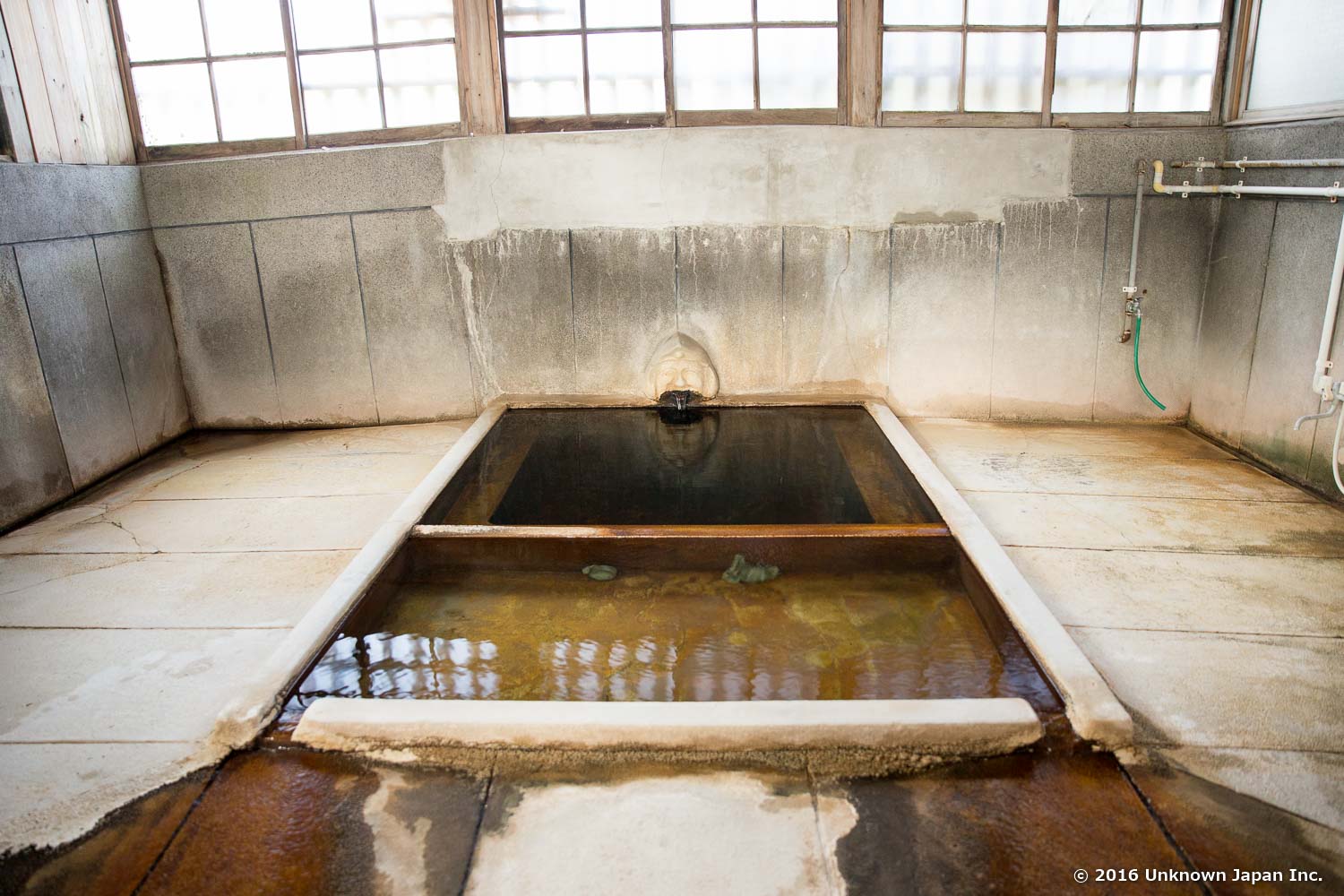この浴室の雰囲気、素晴らしいですね。完璧に仕上がってます。真ん中に浴槽が置かれているのみのタイプで、浴槽からザブザブかけ湯すると気持ちいいです。