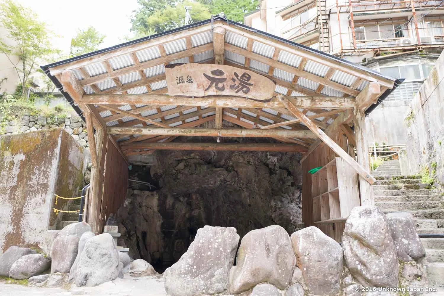 元湯です。24時間無料で入ることができますが、外にあるので入浴マナーには気を付けましょう。くれぐれも裸で外に出ないように。