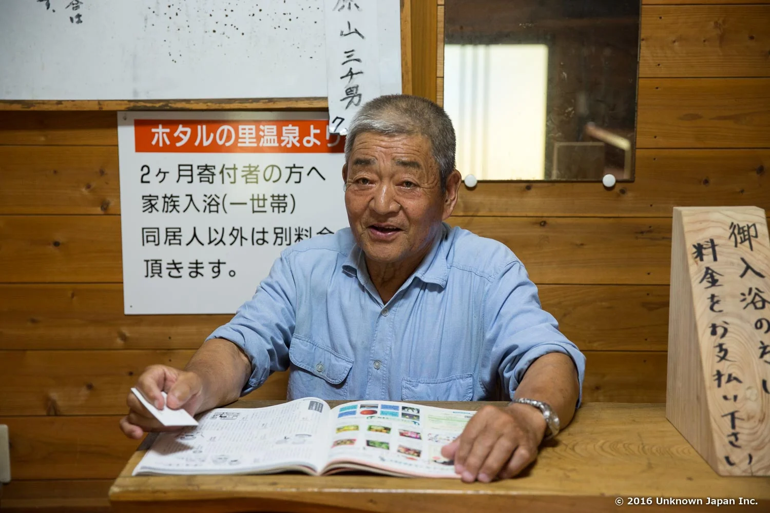 受付に座る勝利さん、この日はちょっとだけ飲んでます(笑)。普段は受付は無人で、人がいるのは土日祝の午前中のみです。