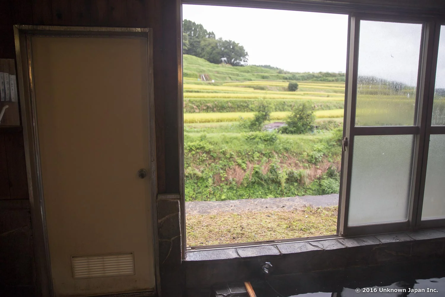 左側の扉は今は開きません。勝利さんによれば、田園風景を眺めながら入る露天風呂を将来作る計画があり、その日のために準備しているそうです。たのしみですね。