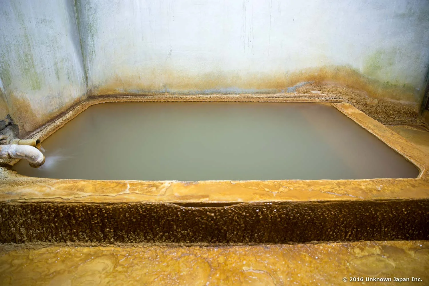 源泉は透明なのですが、空気に触れることで黄色く濁ります。お客さんからは成分が多いわりにさっぱりしていて湯切れがよいと言われるそうです。そう言われるのわかります。