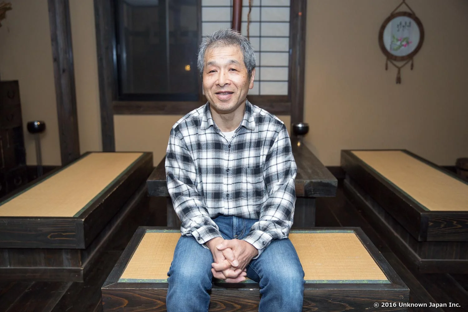 この日、新清館を48年ぶりに訪れたという潤治さん73歳です。なんと48年前の教員時代にこちらの新清館に下宿されていたそうです。その48年ぶりの訪問タイミングで撮影させていただくことになるとは!ご縁ですね(笑)。しかも、潤治さんには、その後、弘明さんへのインタビューにずっと同席していただきました(笑)。時々、潤治さんが質問したりして、楽しかったです。