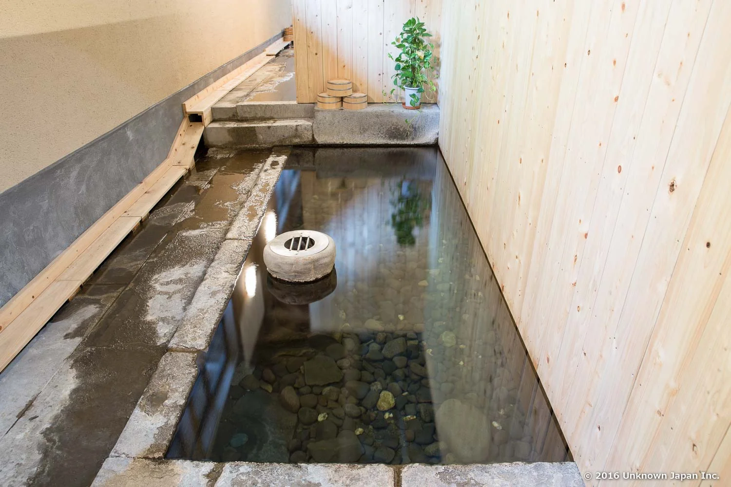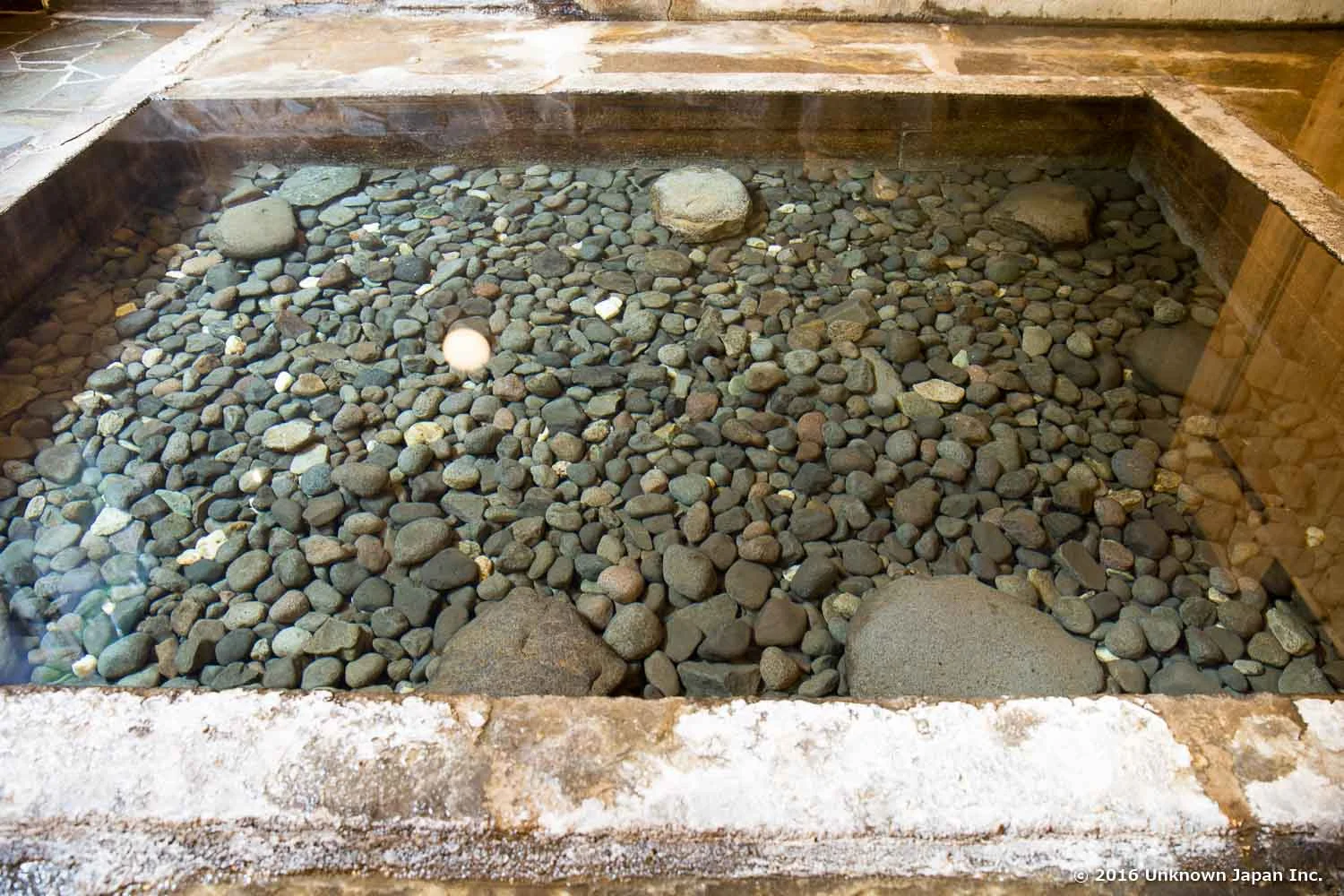 さて、浴場に入ると、最初にぬる目のお湯が張られた浴槽があります。敏美さんによれば、まずはこちらで体を少し温めるのが良いとのことです。そして奥に行くと・・・