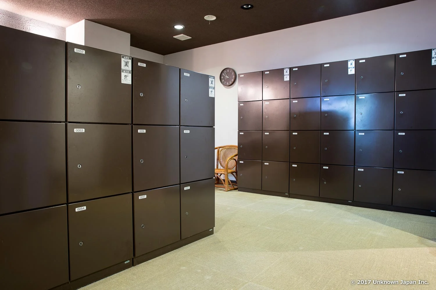 脱衣所はとても広くて綺麗です。全てロッカー式となっている為、貴重品も安心ですね。