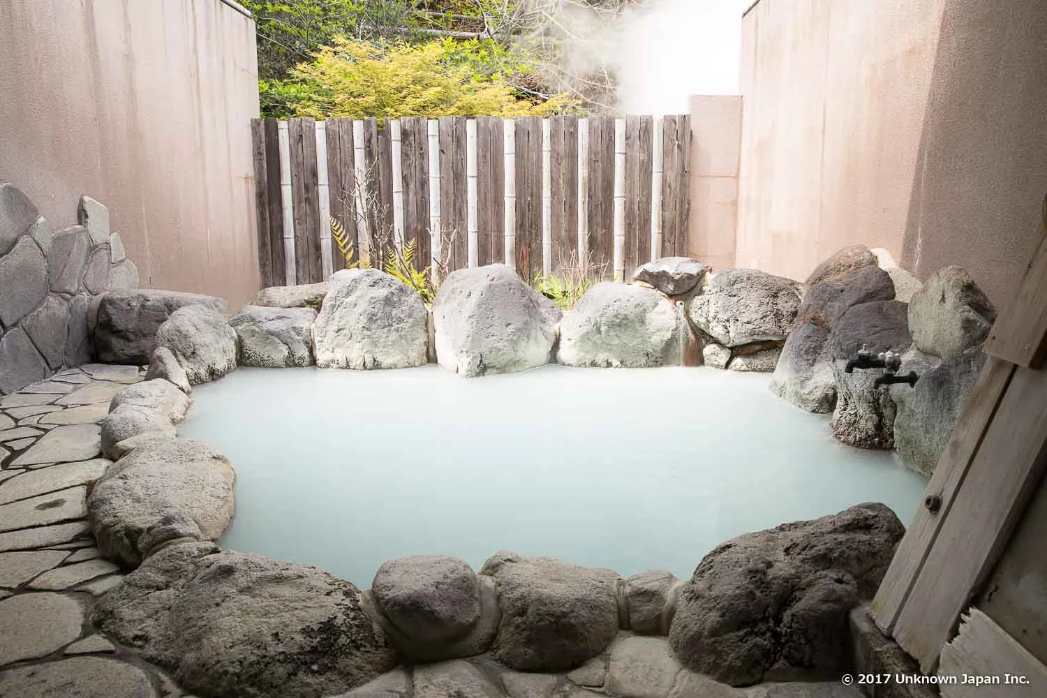 こちらの温泉は家族湯も5室あります。家族湯も真っ白な硫黄泉で香りもとても豊かです。