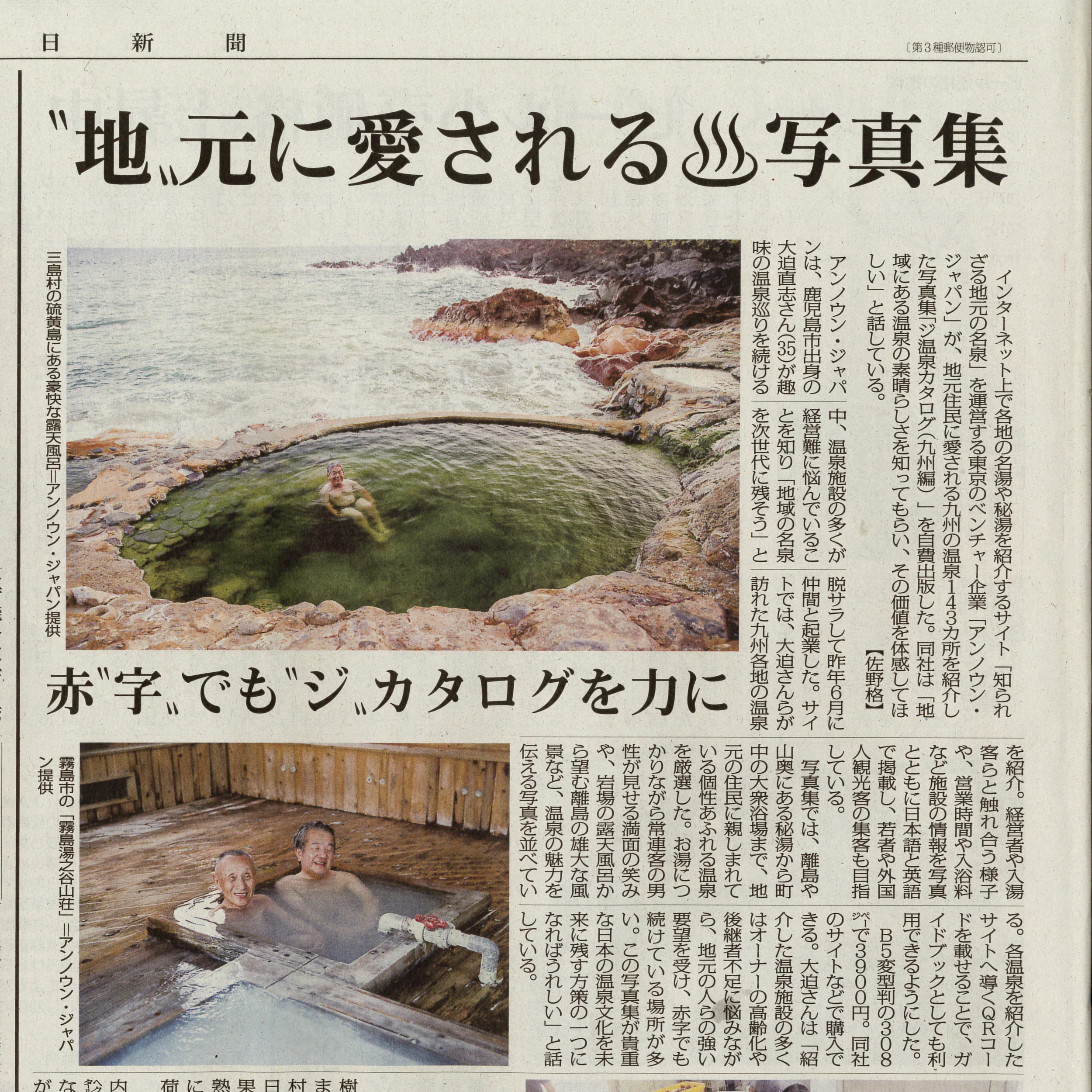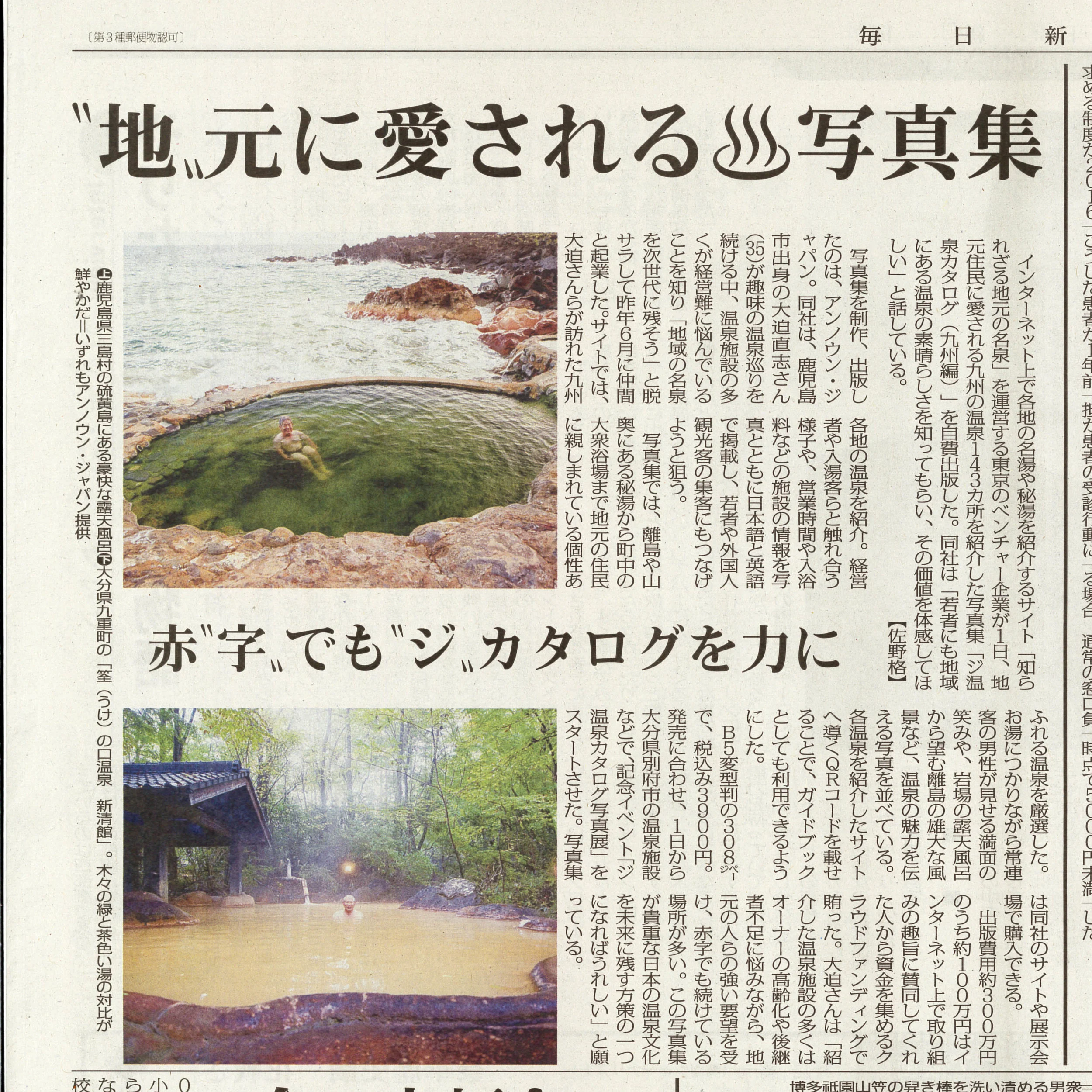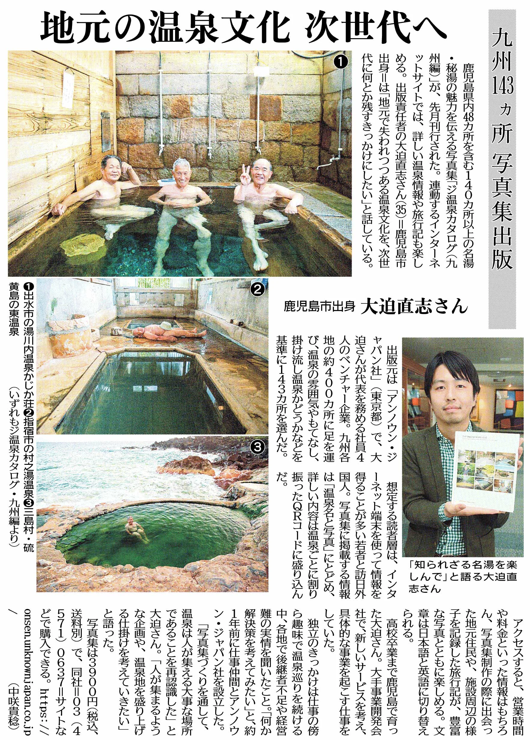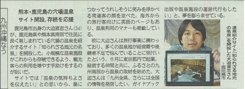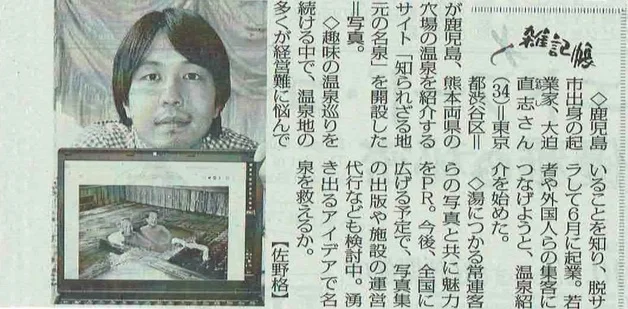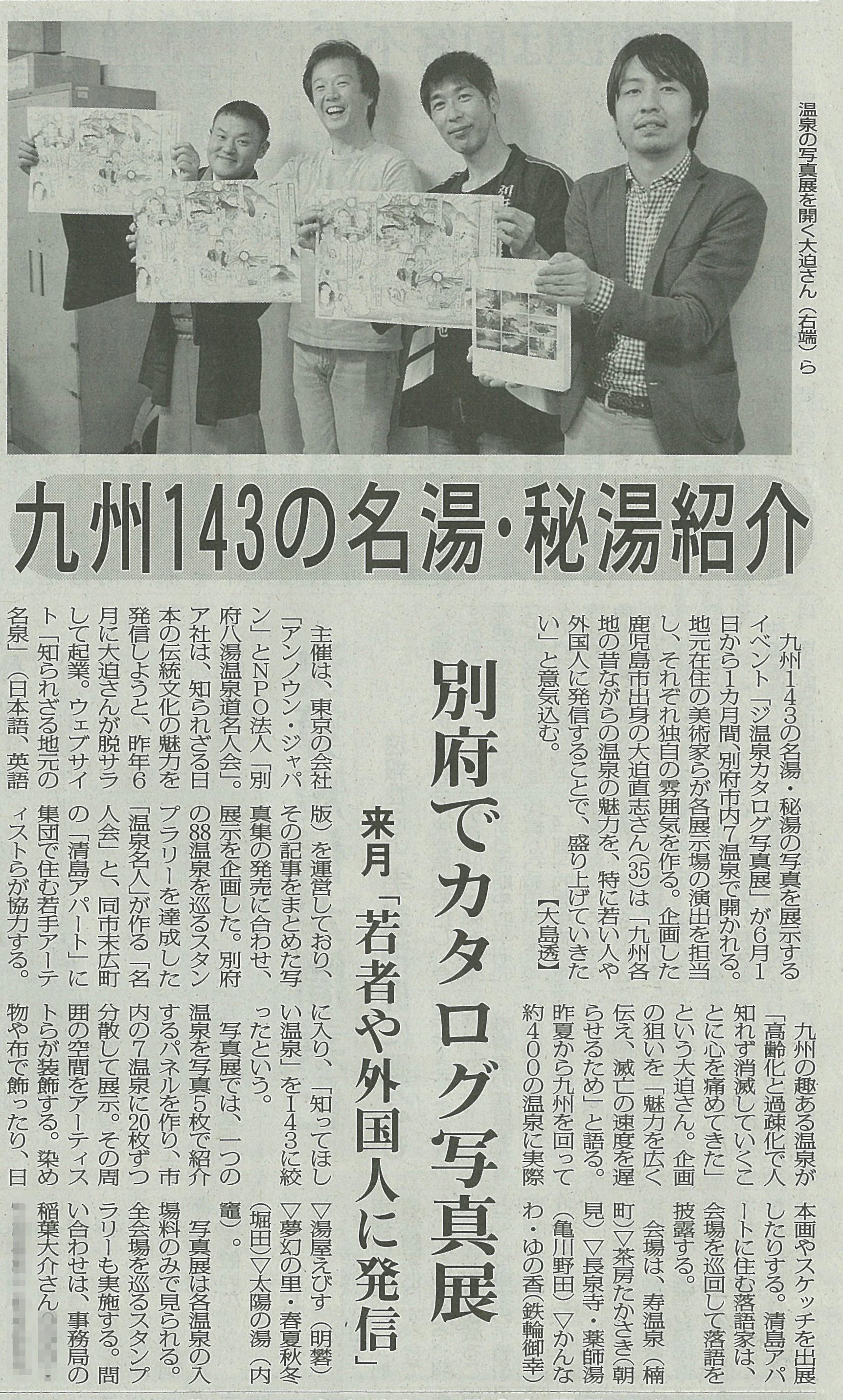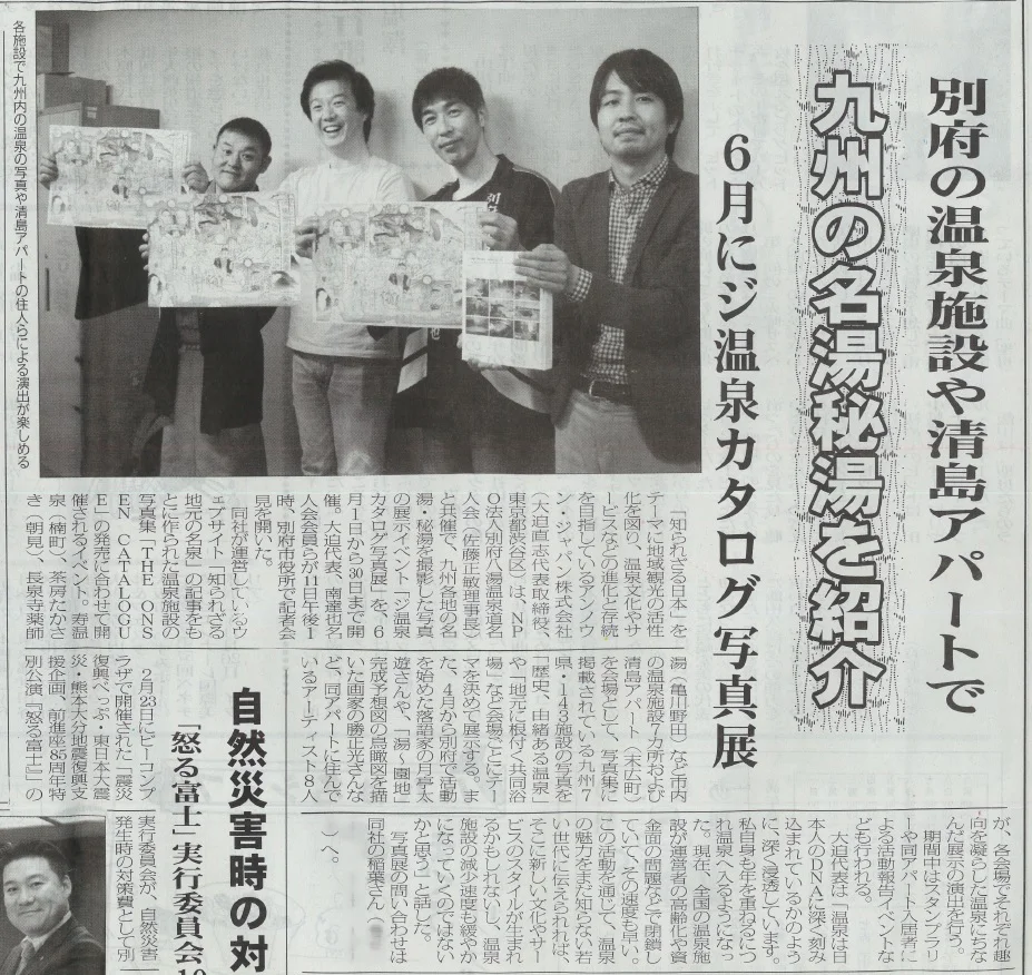 九州の知られざる名湯・秘湯を写真でめぐる写真集「ジ温泉カタログ(九州編)」および「ジ温泉カタログ写真展(別府市内8ヶ所、6/1-30開催)」について取り上げていただきました。