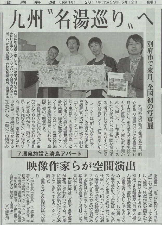 九州の知られざる名湯・秘湯を写真でめぐる「ジ温泉カタログ写真展(別府市内8ヶ所、6/1-30開催)」について取り上げていただきました。