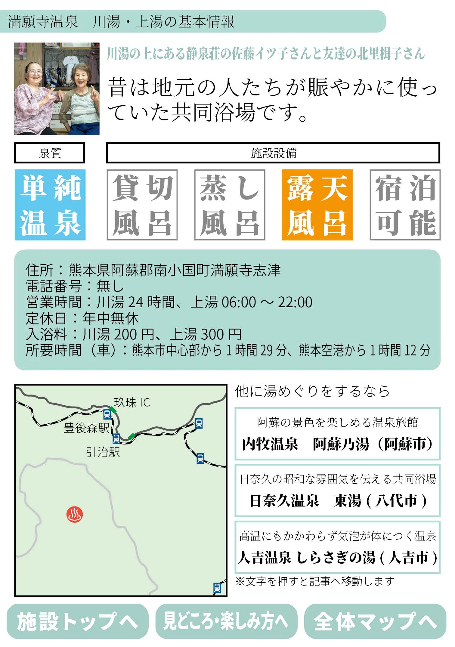 熊本県の名湯・秘湯を紹介する電子書籍です。湯めぐりを愉しむために必要な「見どころ・楽しみ方」「泉質や設備などの気になる情報」「住所・営業時間・料金などの基本情報」「施設の位置を示したマップ」コンパクトに掲載しています。
